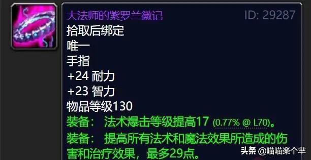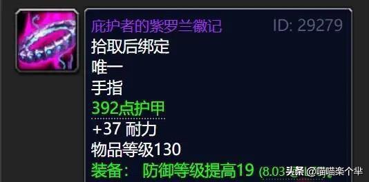 魔兽怀旧服卡拉赞的前置任务做完,可以在副本门口接到声望戒指任务,每到达新的声望等级,就可以升级一次紫罗兰徽记戒指,一直到崇拜达到最高级,属性也基本是P1毕业。由于各职业都需求这枚戒指,所以暴雪特地做了4种属性,分别对应坦克、物理DPS、法系DPS和治疗。