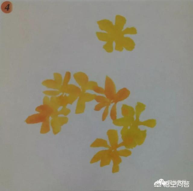 步骤3:花朵的组合很重要,迎春花开放时非常灿烂,多以花朵为主,表现好花朵的组合是画好迎春花的关键。此组合以正面花朵为主。