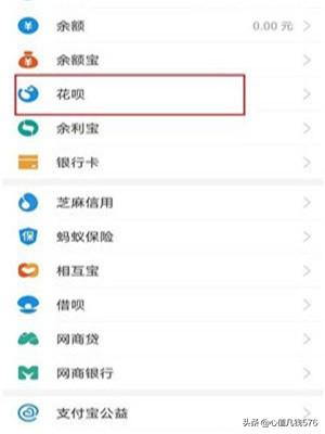3、点击“花呗”。